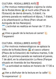 ➖Amb motiu de les pluges ?️ caigudes recentment i el mes de març, l’Ajuntament ? de Riba-roja ha decidit reforçar el servei de fumigacions amb un Pla Especial que augmenta ⬆️ la periodicitat dels treballs programats per al control de la població de mosquit ?.